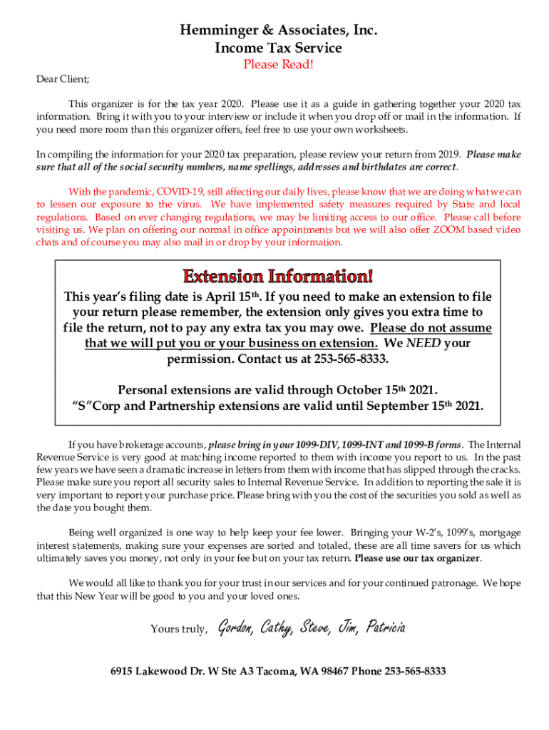 Fill out your tax organizer for 2020 online with pdfFiller!