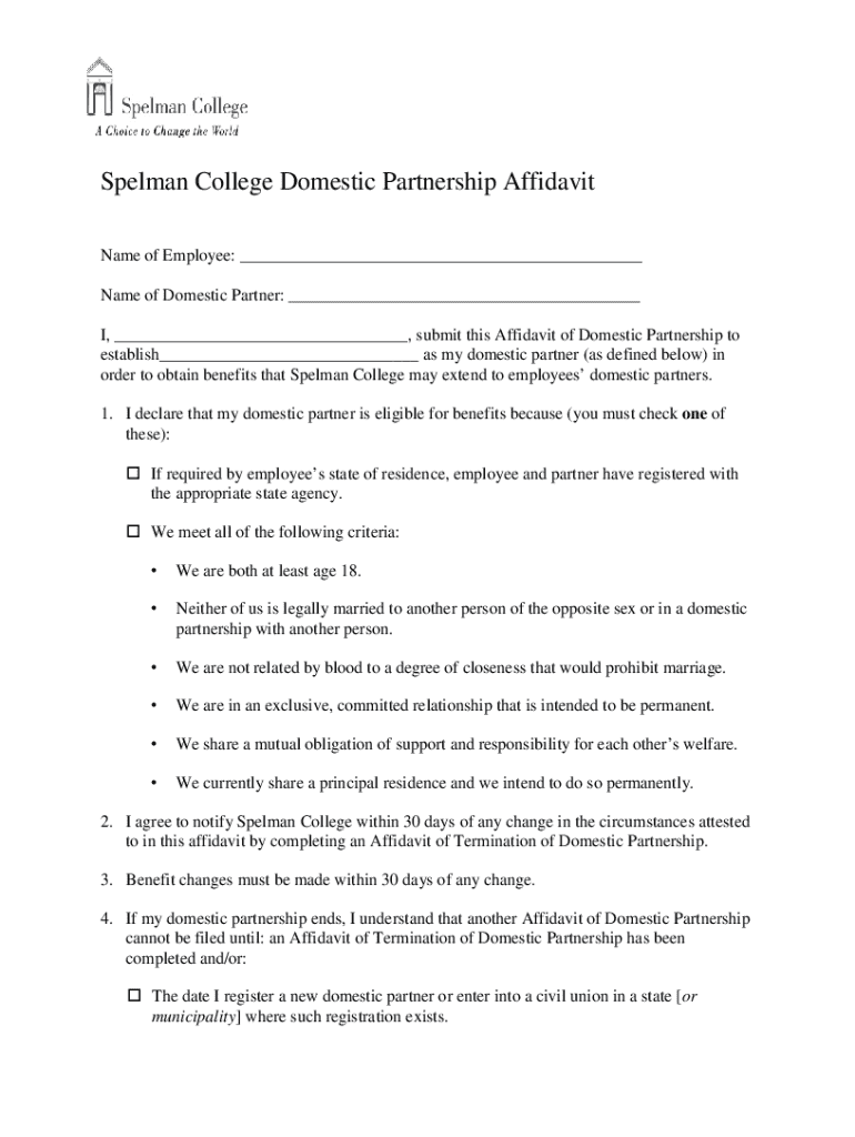 Get the free Spelman College Domestic Partnership Affidavit - mit spelman