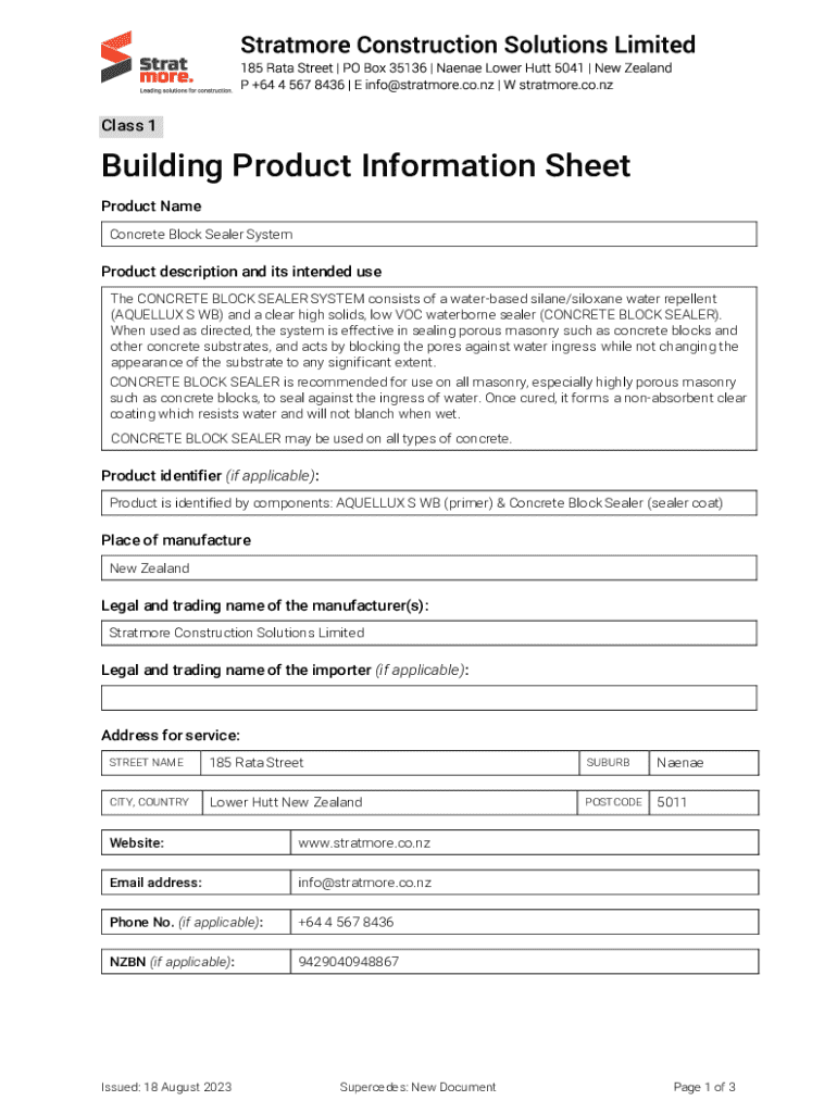Building Product Information Sheet is not the form you're looking for?Search for another form here.