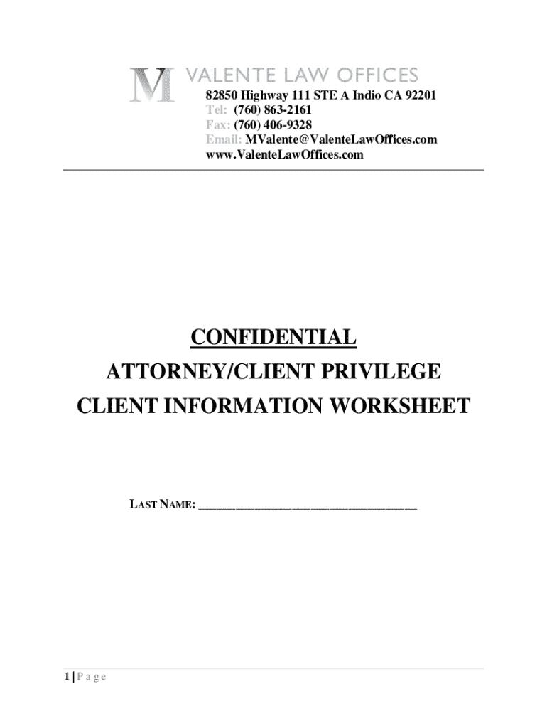 Client Information Worksheet is not the form you're looking for?Search for another form here.
