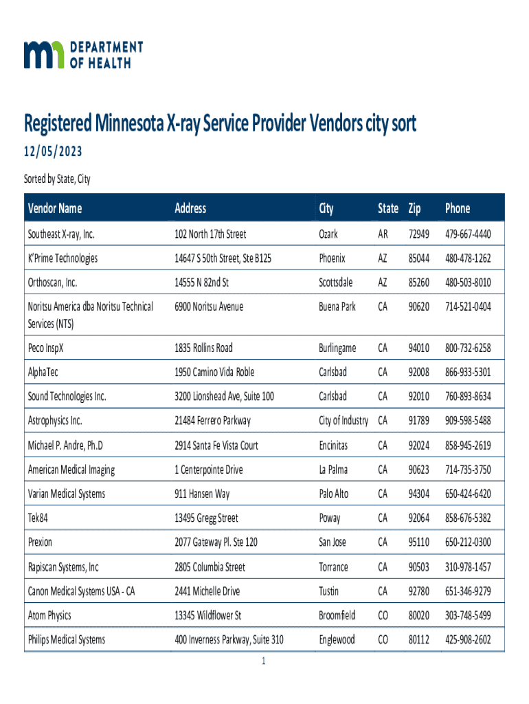 Get the free Registered Minnesota X-ray Service Provider Vendors