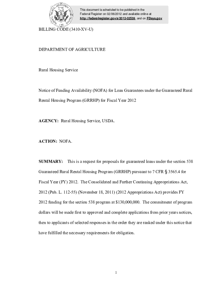 Get the free Notice of Funding Availability (NOFA) for Loan Guarantees under the Guaranteed Rural