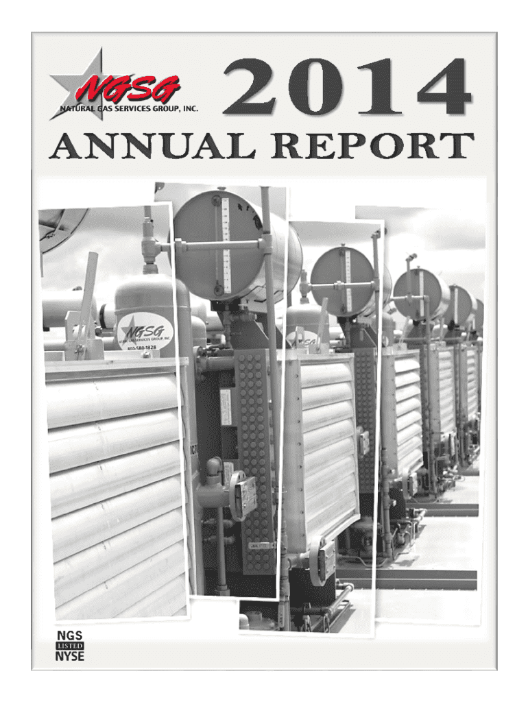 This document provides a comprehensive overview of the financial performance and operational highlights of Natural Gas Services Group, Inc. for the year ended December 31, 2014. It includes information
