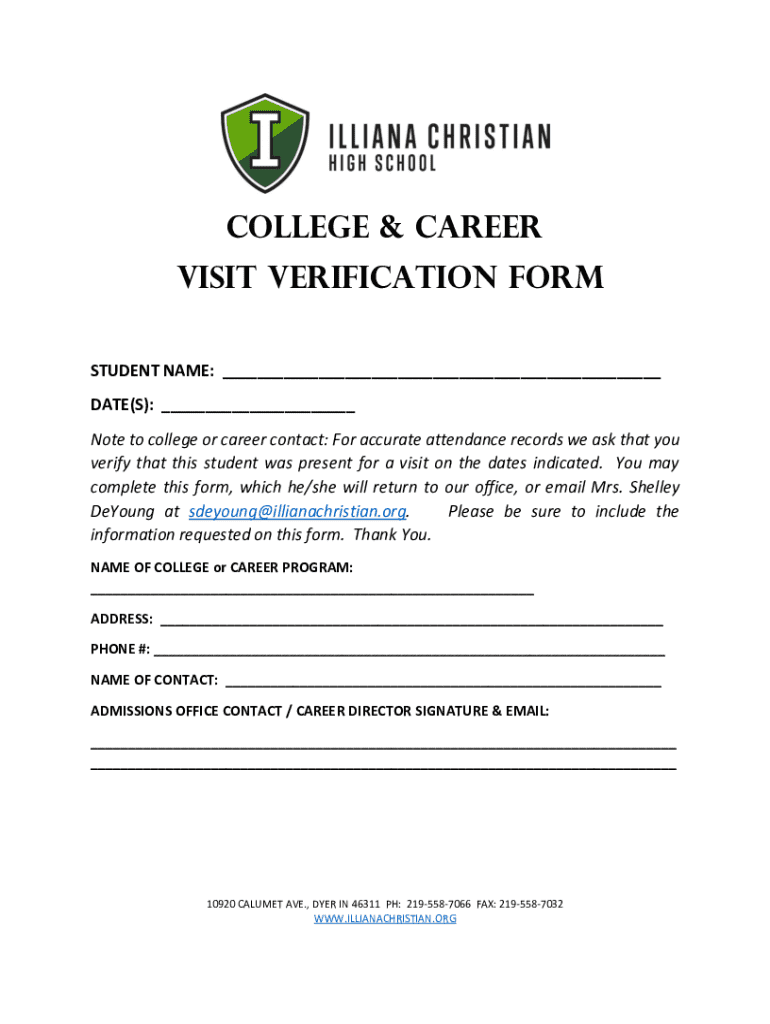 Form for verifying student visits to a college or career program, including details for contact verification.