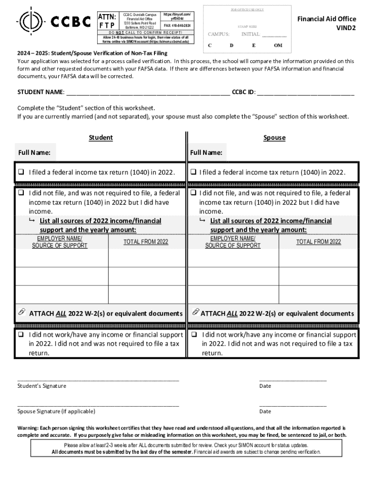 Studentspouse verification of non-tax is typically required for students or their spouses who did not file a tax return and are applying for federal financial aid, such as Pell Grants or federal student loans.