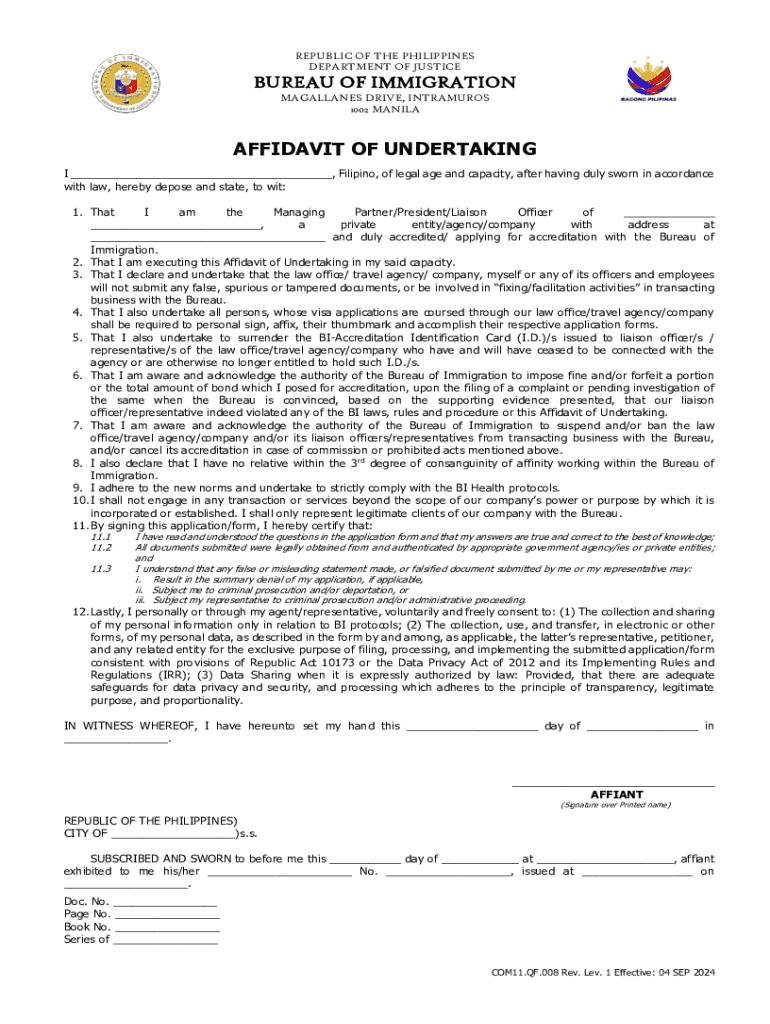 Get the free Affidavit of Undertaking