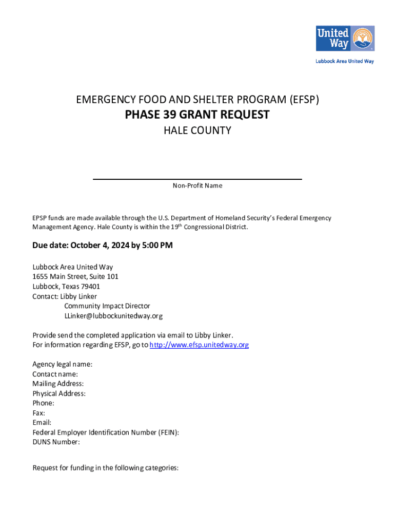 Get the free Efsp Phase 39 Grant Request
