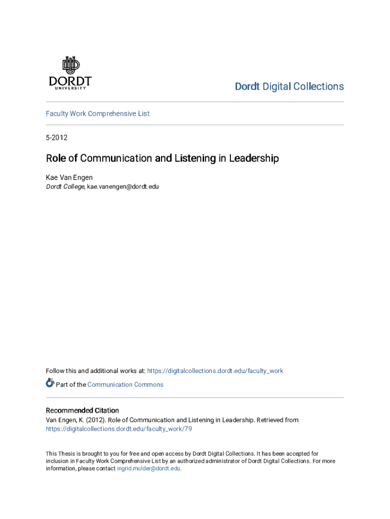 Get the free Role of Communication and Listening in Leadership - digitalcollections dordt