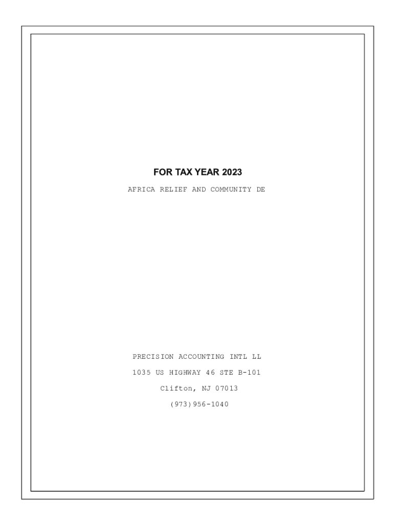 This document is the 2023 Form 990 for Africa Relief and Community Development. It provides comprehensive information about the organization’s finances, including revenues, expenses, and program