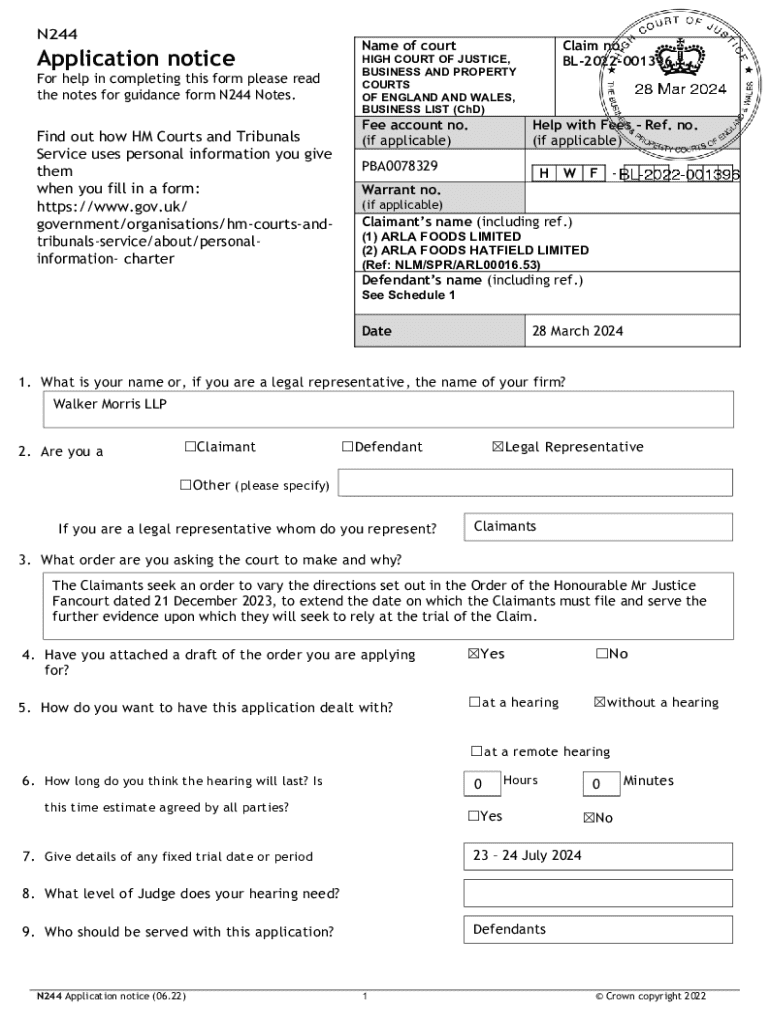 N244 is a specific form used in the UK legal system to apply for permission to make a specific application or to seek relief from the court.