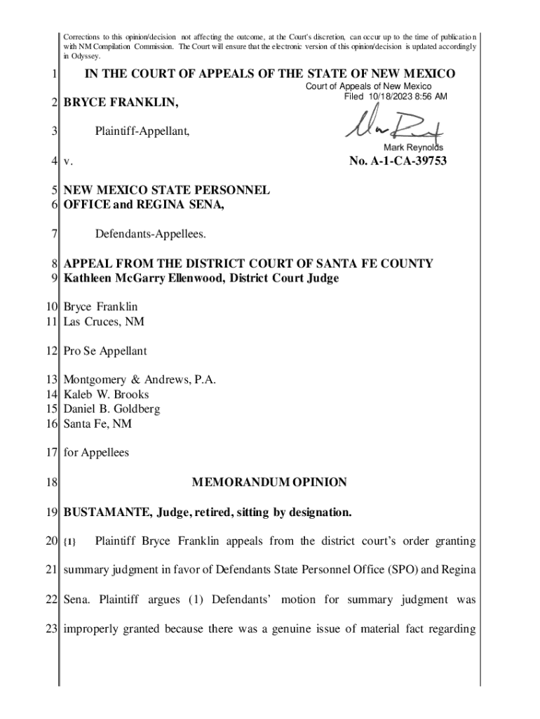 Corrections to this opinion/decision not affecting the outcome, at the Court\'s discretion, can occur up to the time of publicatio n with NM Compilation Commission. The Court will ensure that the