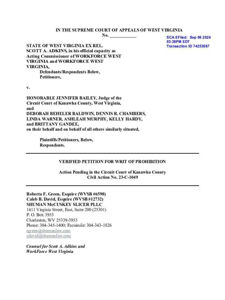 Get the free Verified Petition for Writ of Prohibition