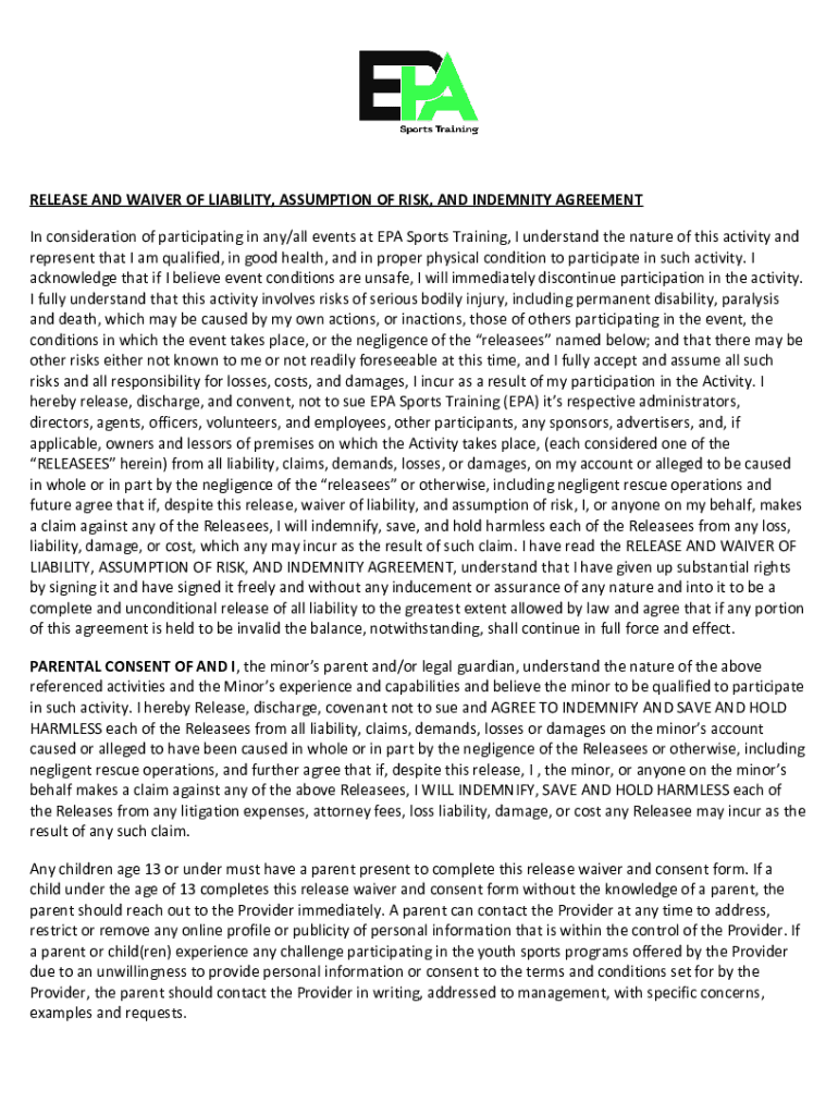 Get the free Release and Waiver of Liability