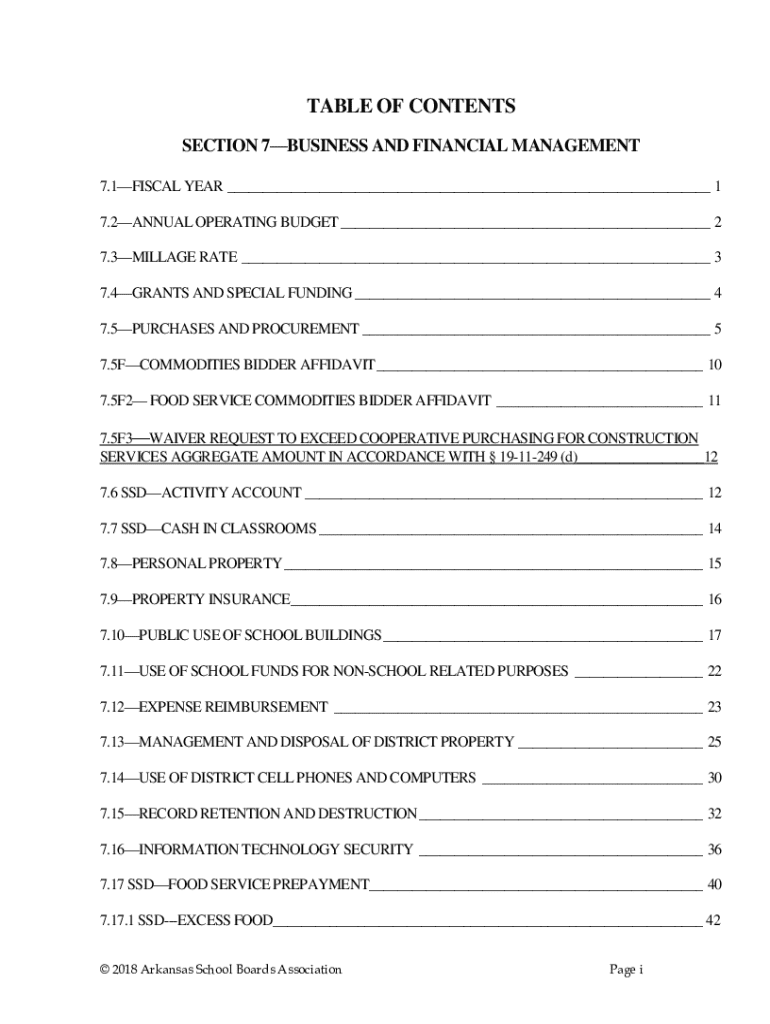 TABLE OF CONTENTS SECTION 7BUSINESS AND FINANCIAL MANAGEMENT 7.1FISCAL YEAR ___ 1 7.2ANNUAL OPERATING BUDGET ___ 2 7.3MILLAGE RATE ___ 3 7.4GRANTS AND SPECIAL FUNDING ___ 4 7.5PURCHASES AND PROCUREMENT