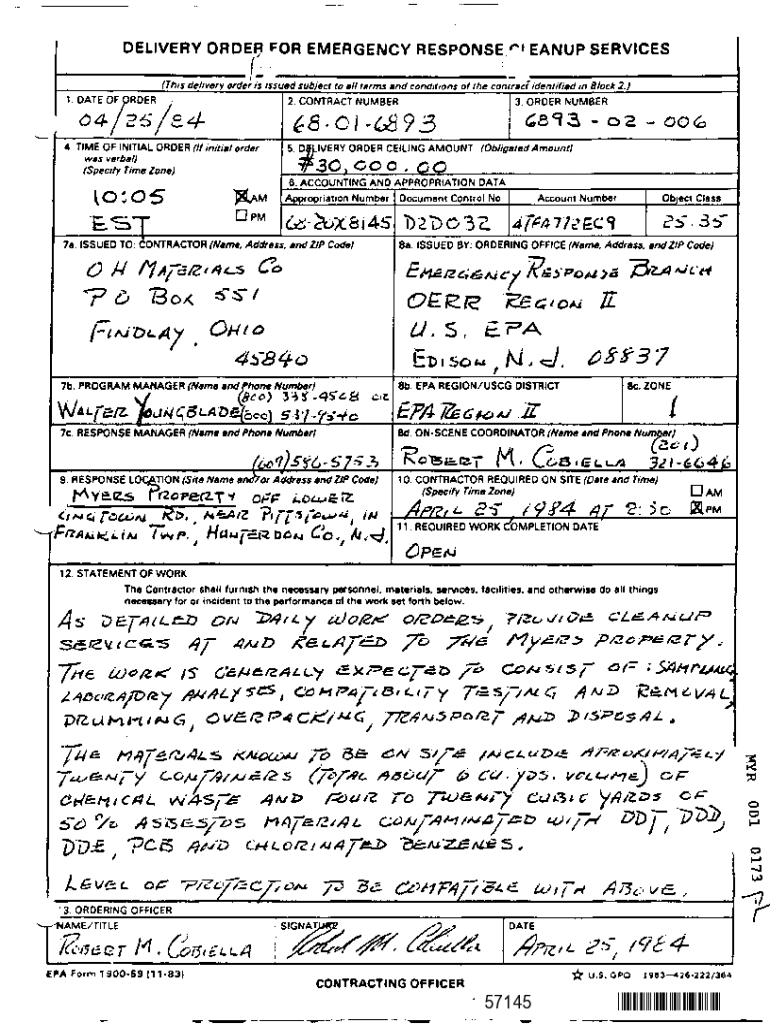 This document serves as an official order for emergency response services, detailing all necessary information including order number, contract number, and required personnel and materials.