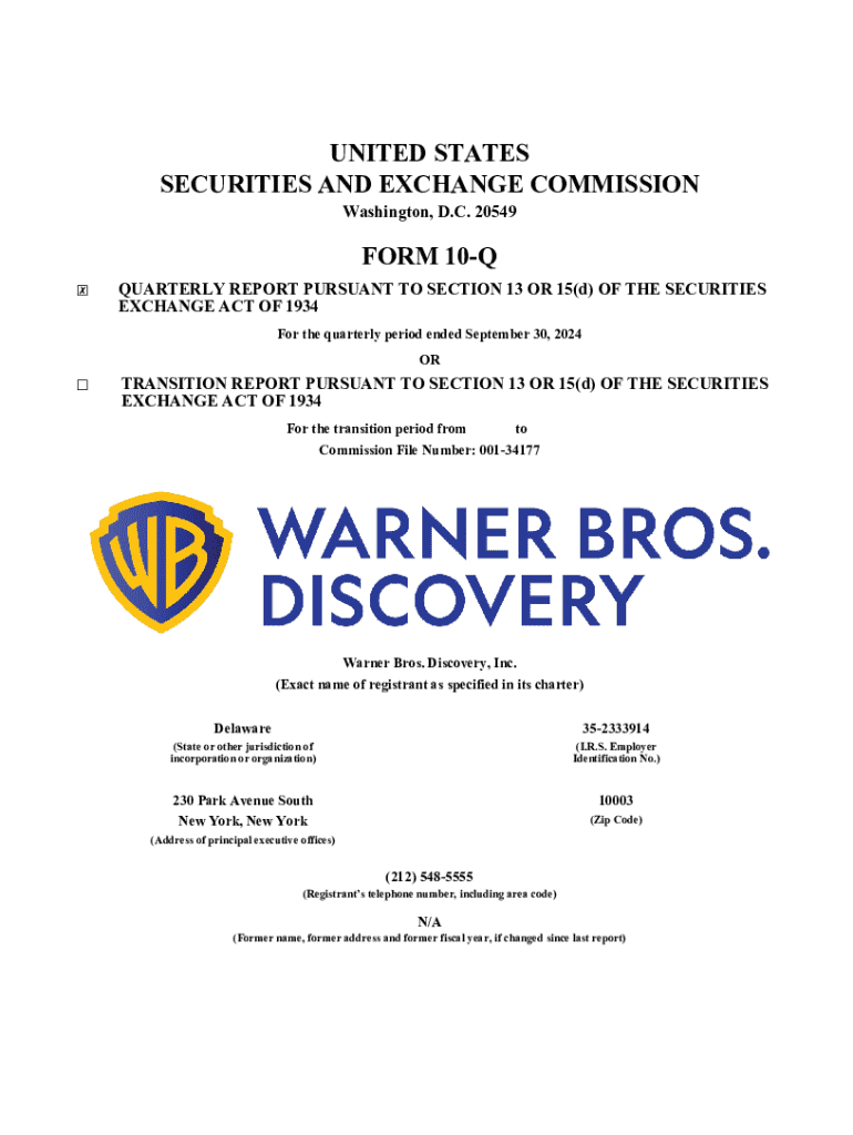 This document is a quarterly report that provides a comprehensive overview of Warner Bros. Discovery, Inc.’s financial position and operational performance for the period ending September 30, 2024.
