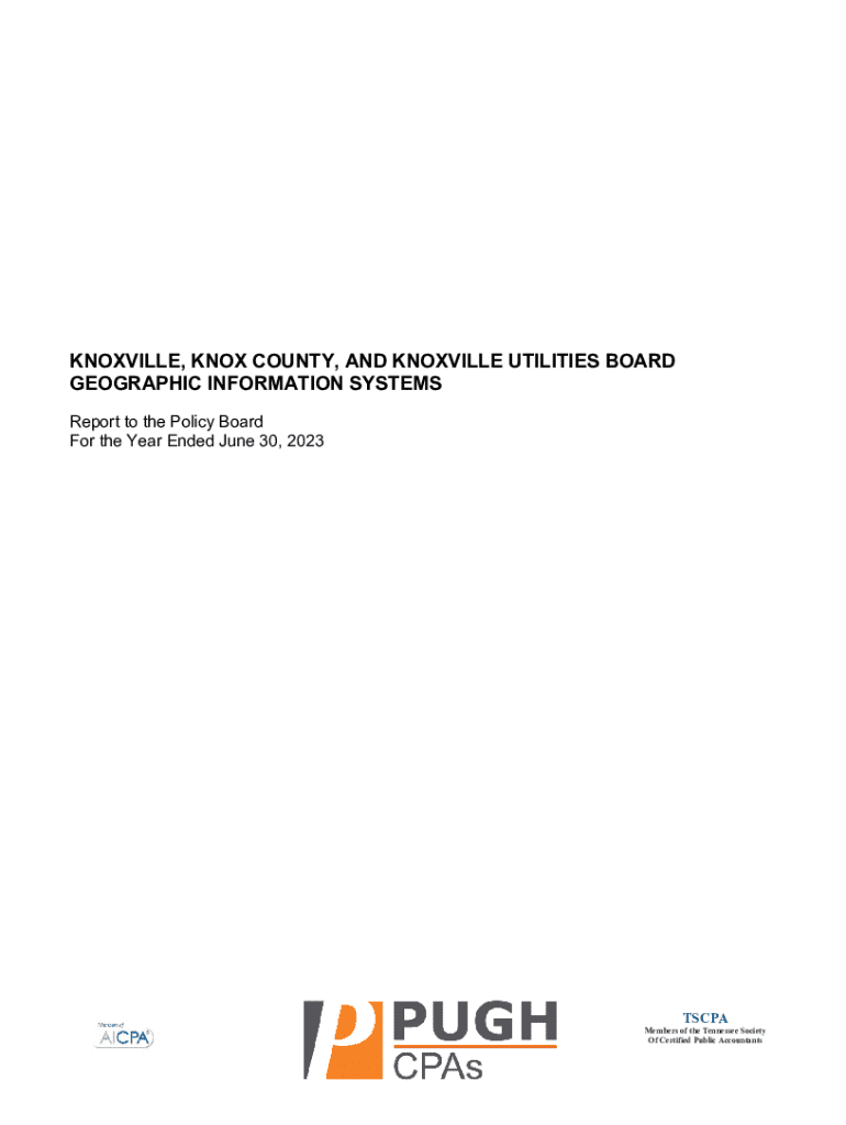 KNOXVILLE, KNOX COUNTY, AND KNOXVILLE UTILITIES BOARD GEOGRAPHIC INFORMATION SYSTEMS Report to the Policy Board For the Year Ended June 30, 2023TSCPAMembers of the Tennessee Society Of Certified Public