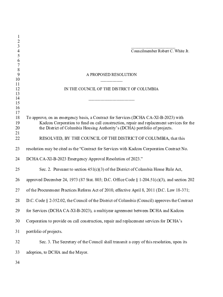 Get the free To approve, on an emergency basis, a Contract for Services (DCHA CA-XI-B-2023) with