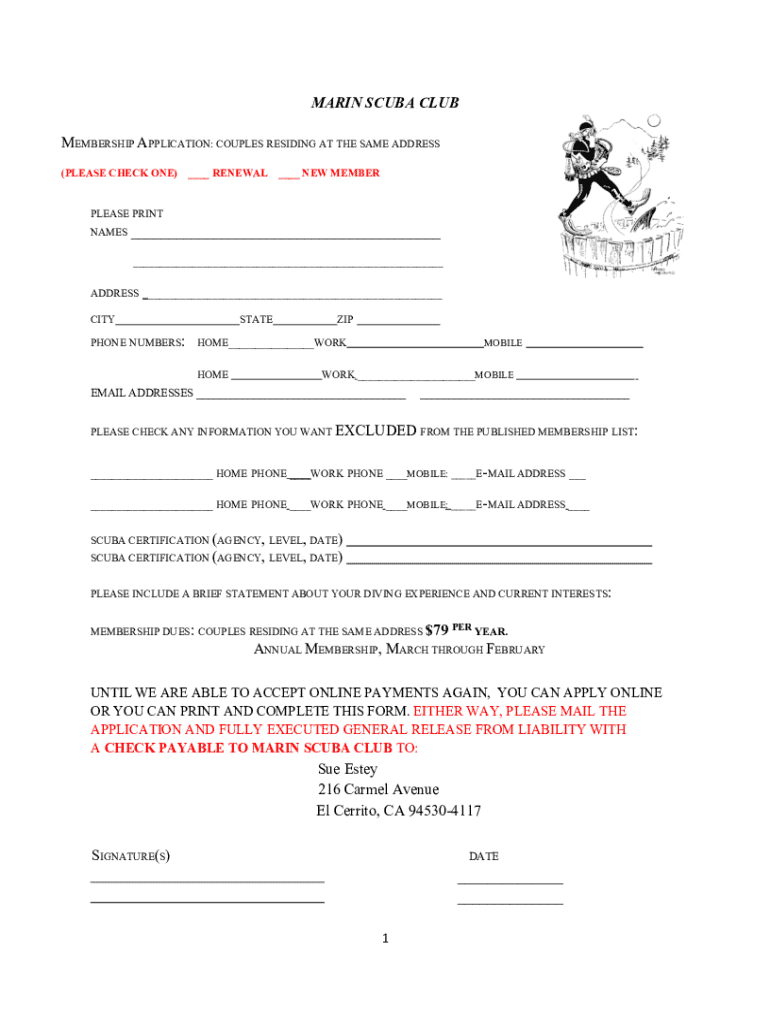 Marin Scuba Club Membership is not the form you're looking for?Search for another form here.