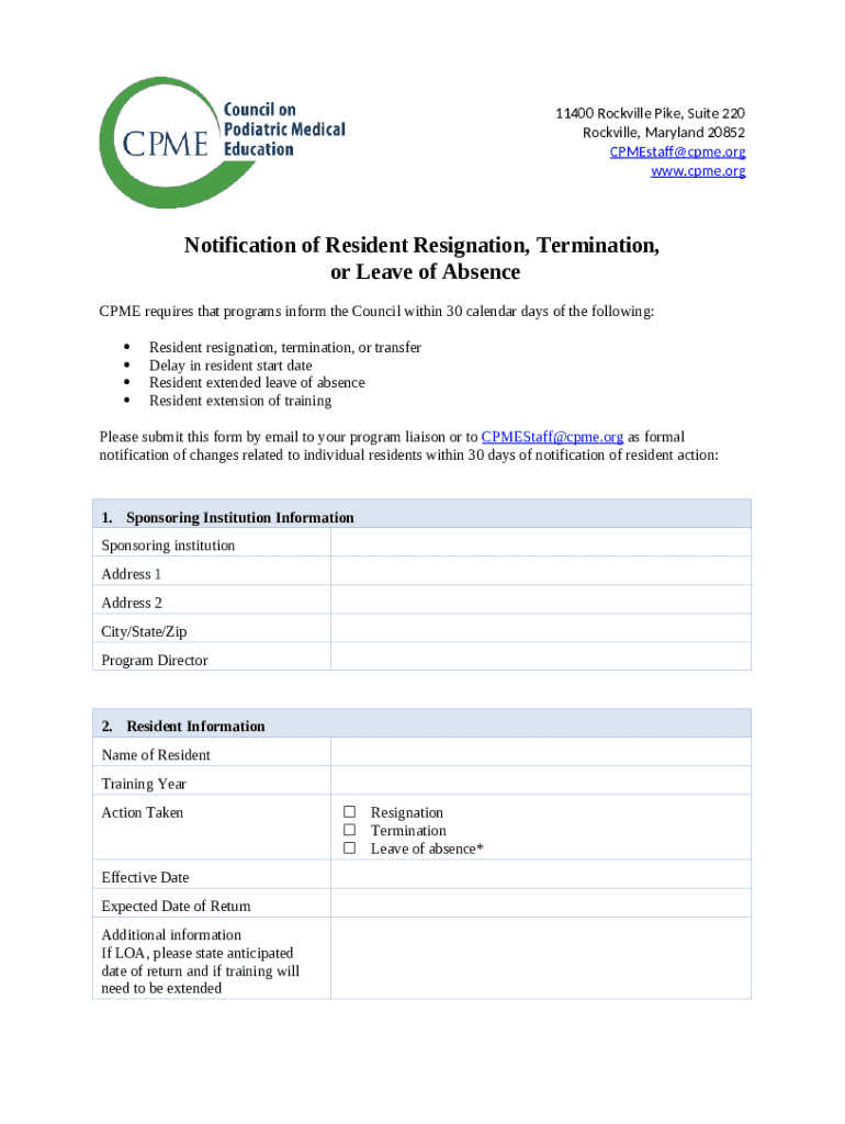 Notification of Resident Resignation, Termination, or Leave of Absence word template: frequently asked questions