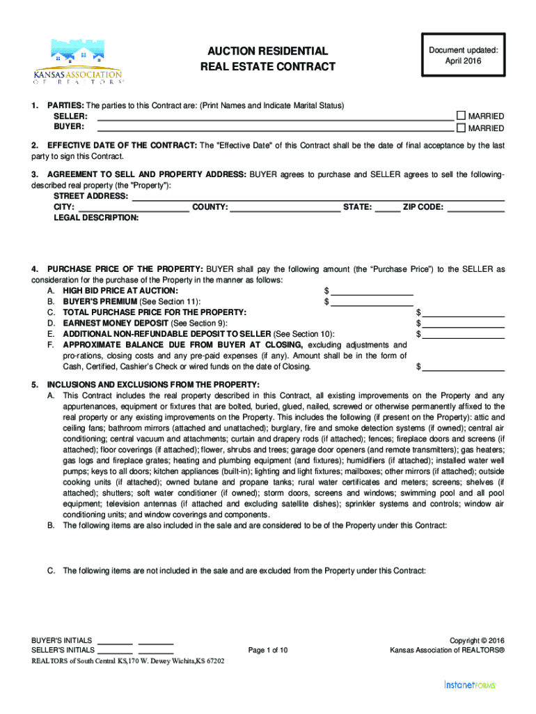 Get the free Auction Residential Real Estate Contract