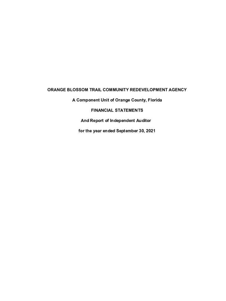 ORANGE BLOSSOM TRAIL COMMUNITY REDEVELOPMENT AGENCY A Component Unit of Orange County, Florida FINANCIAL STATEMENTS And Report of Independent Auditor for the year ended September 30, 2021ORANGE BLOSSOM