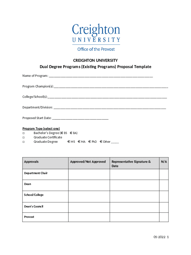 What is Dual Degree Programs Proposal Template - www15 creighton Form?