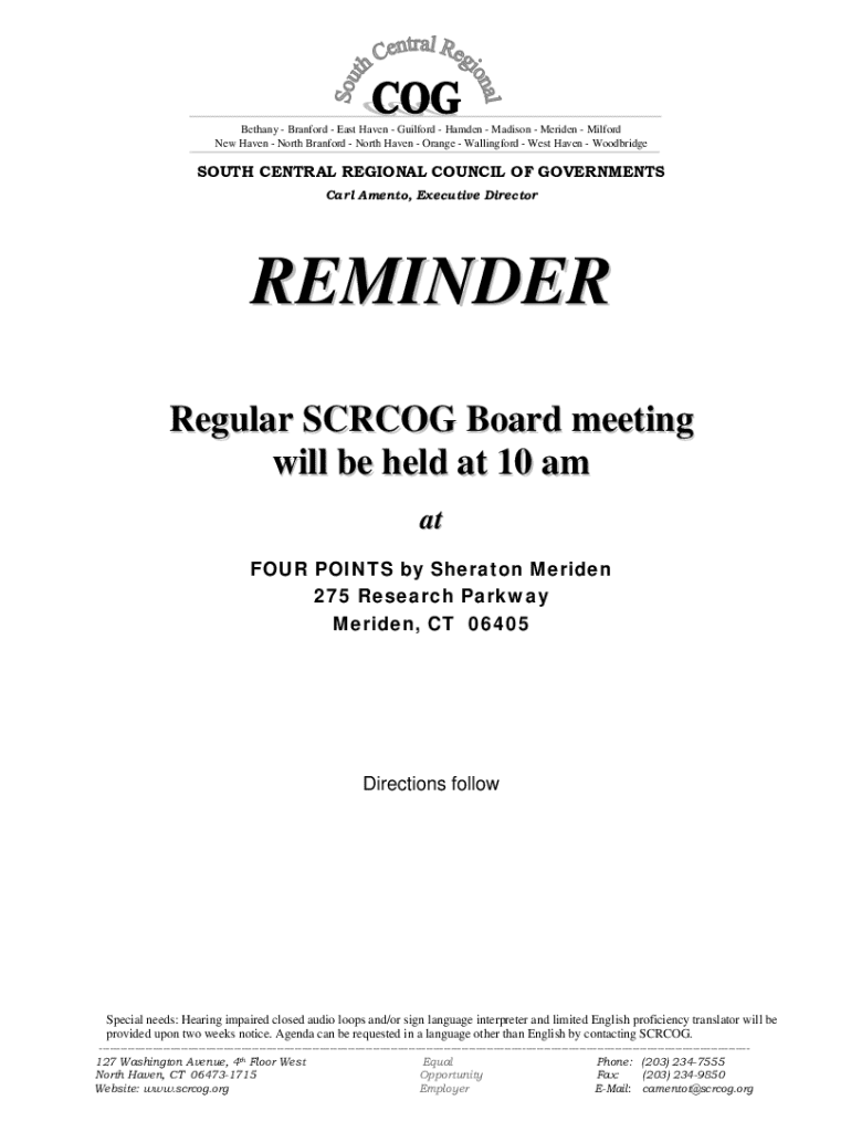 Bethany Branford East Haven Guilford Hamden Madison Meriden Milford New Haven North Branford North Haven Orange Wallingford West Haven WoodbridgeSOUTH CENTRAL REGIONAL COUNCIL OF GOVERNMENTS Carl