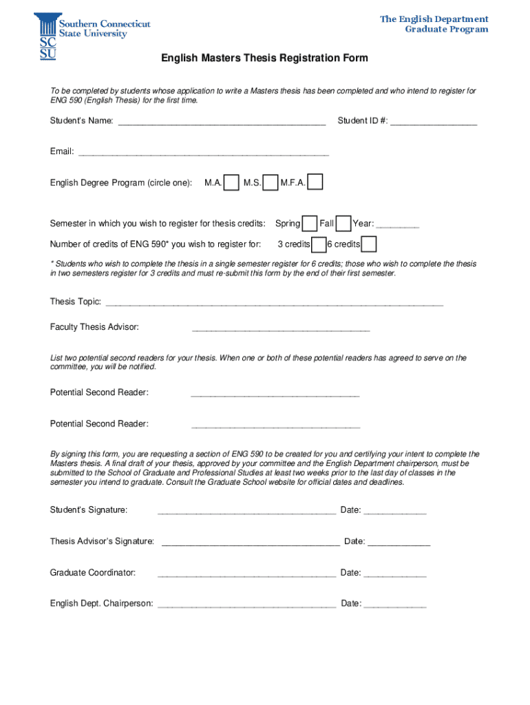 Get the free English Masters Thesis Registration Form