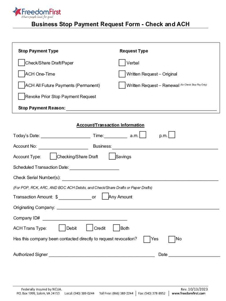 How to fill out business stop payment request