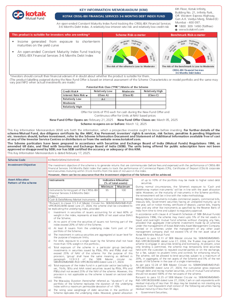 Get the free Key Information Memorandum (kim)