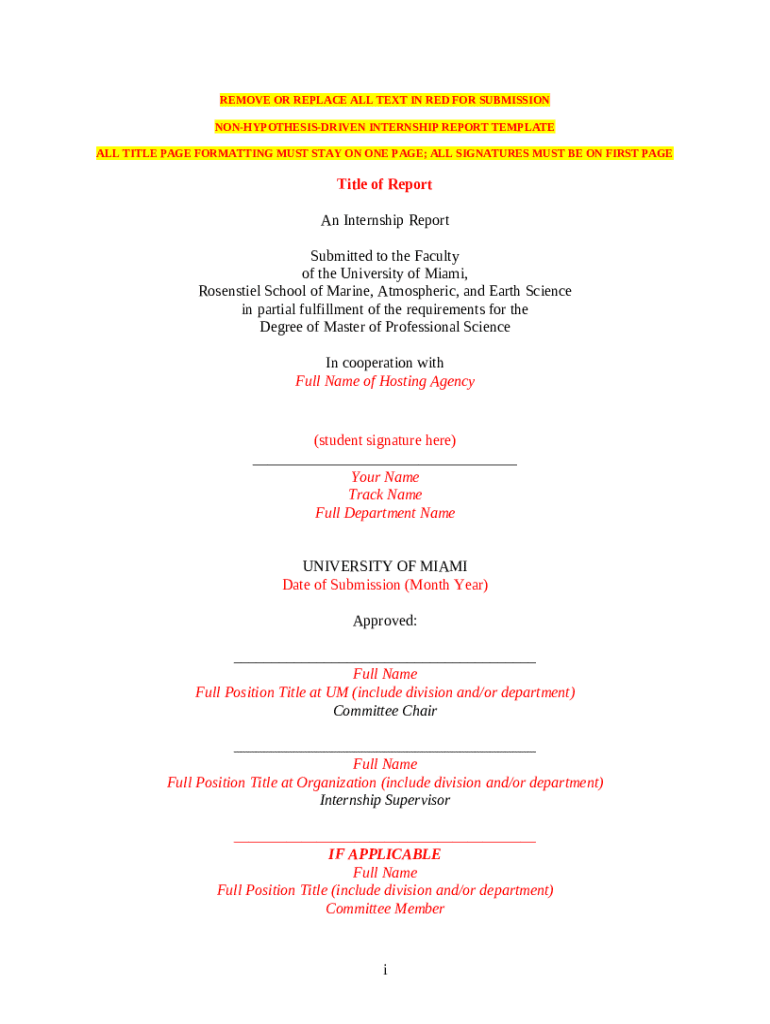 What is Non-hypothesis-driven Internship Report Template Form?
