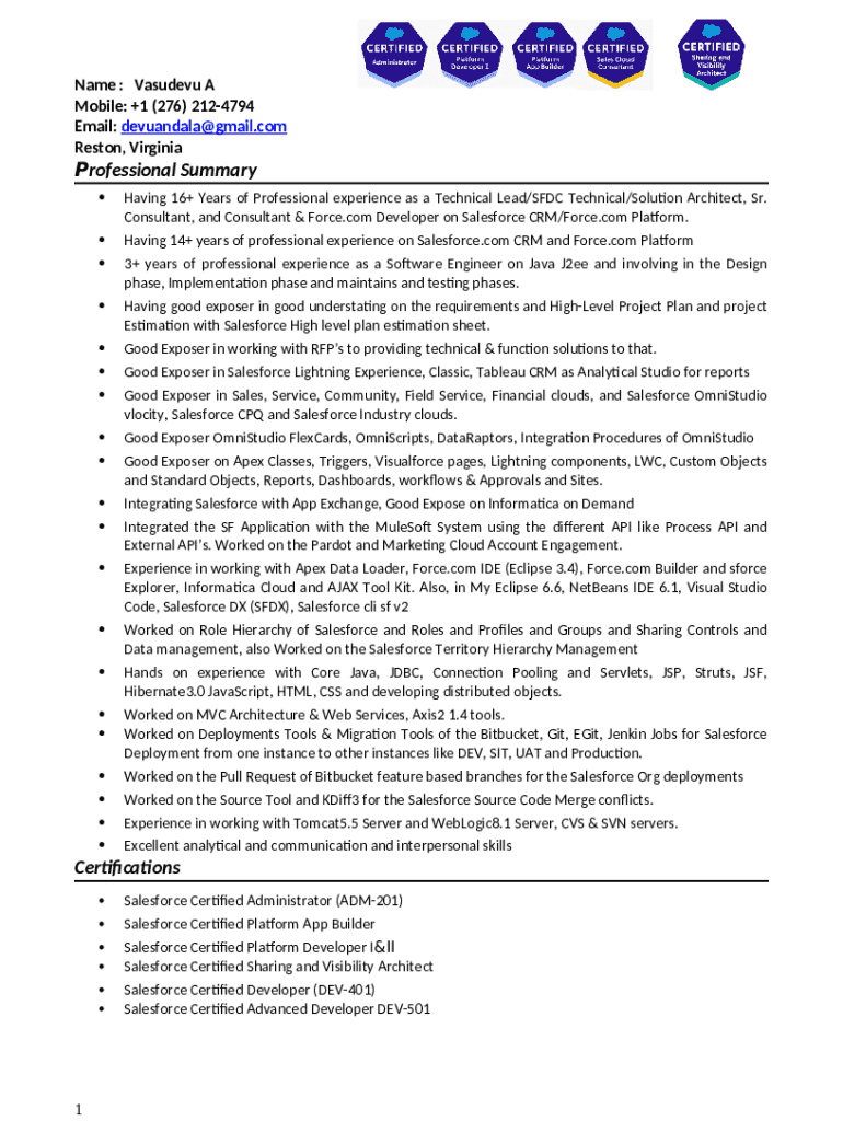 What is - Having 16+ Years of Professional experience as a Technical Lead/SFDC Technical/Solution Architect, Sr Form?
