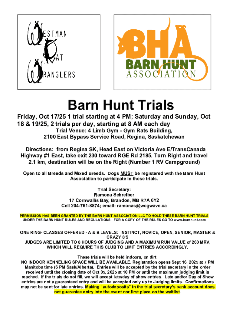 Get the free Official Entry Form – Westman Rat Wranglers Licensed Barn Hunt Trials