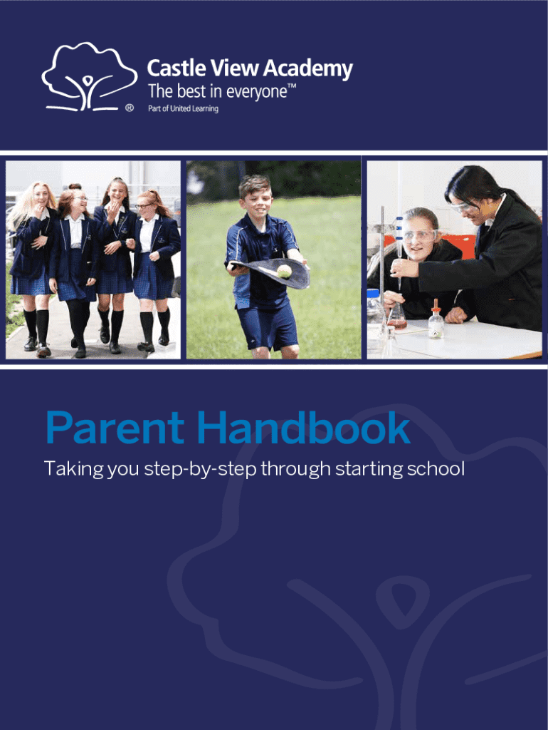 This handbook guides parents through the process of starting school at Castle View Academy, outlining the necessary information and forms required for student enrollment, medical information, contact