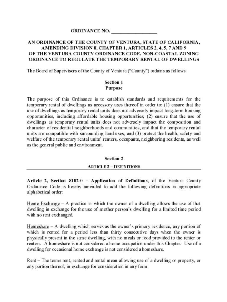 Este Ordinance establece estándares y requisitos para el alquiler temporal de viviendas como usos accesorio, aimando a proteger oportunidades de vivienda a largo plazo, la composición de vecindarios