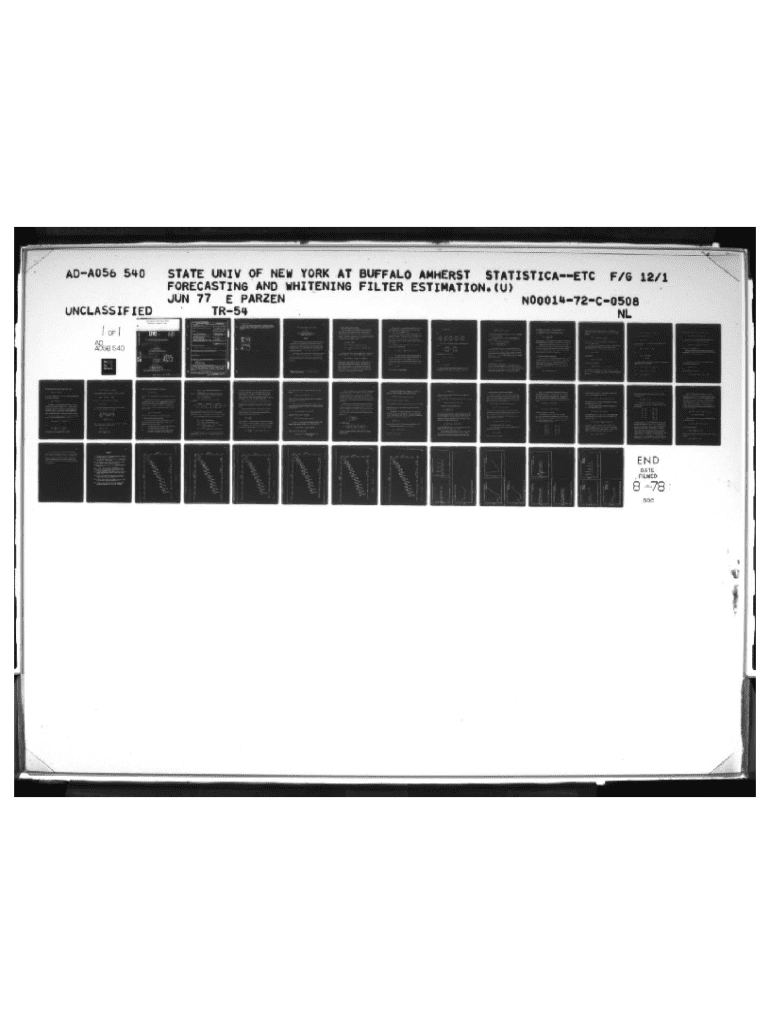 _ _ _*OA 056 51+ 0 UNCLASSIFIED &S8 540__STATE LRIIV OF NEW YORK AT BIWFALO AMHERST STATIST ICAETC F/G 12/t FORECASTING MW WHITENING FILTER ESTIMATION. (U) JUN 77 E PARZEN N000lk72C0508 TR5e NL11u