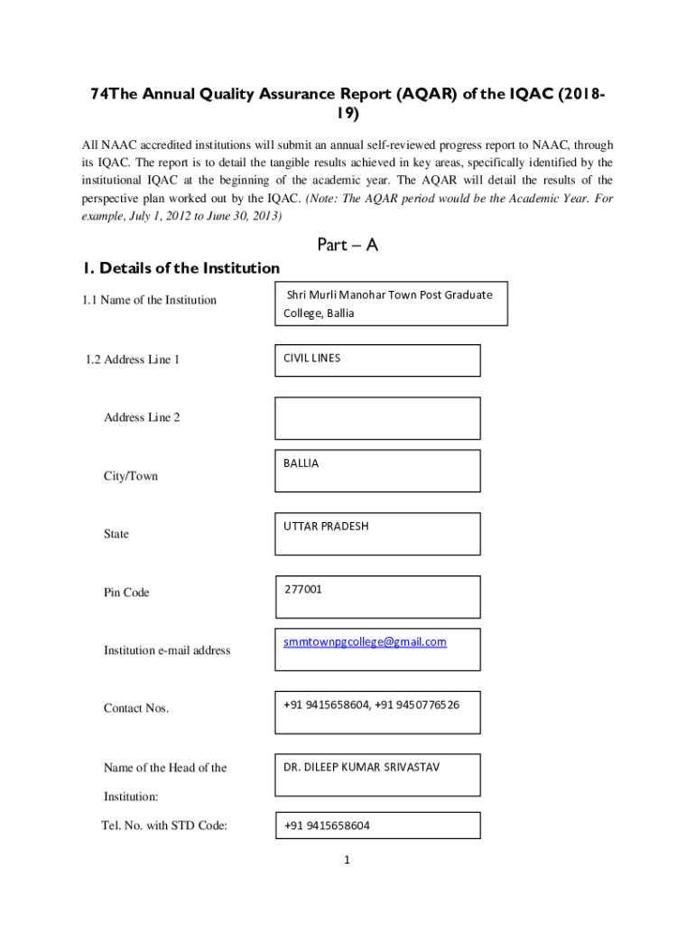 The AQAR outlines the annual self-reviewed progress of NAAC accredited institutions, detailing the results achieved in key areas identified by the institutional IQAC, and provides insights into various