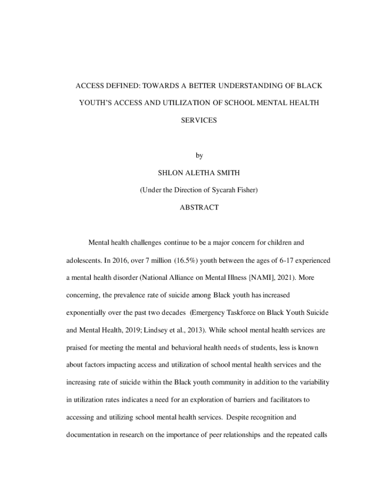 This dissertation explores the access and utilization of mental health services among Black youth in schools, focusing on barriers and facilitators. It highlights the importance of peer relationships