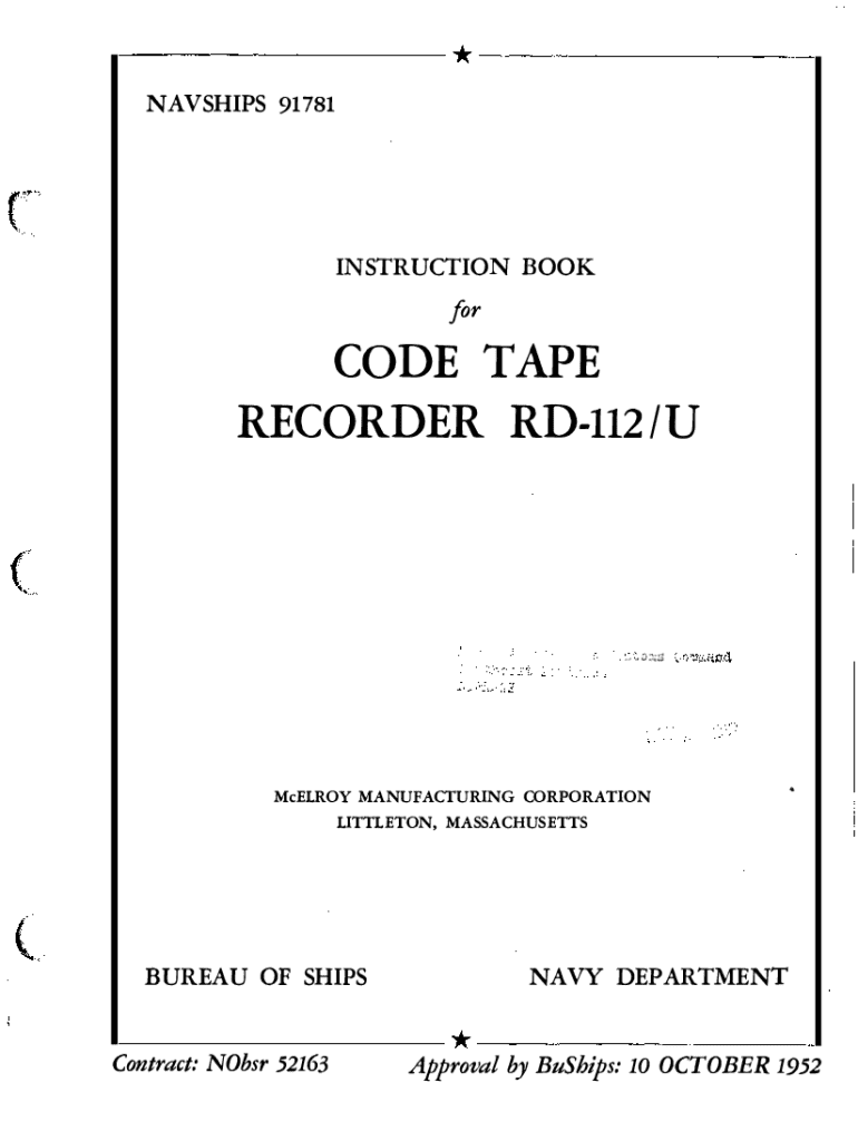 This document provides comprehensive instructions for the operation, installation, maintenance, and repair of the CODE TAPE RECORDER RD-112/U. It includes detailed descriptions of components, electrical