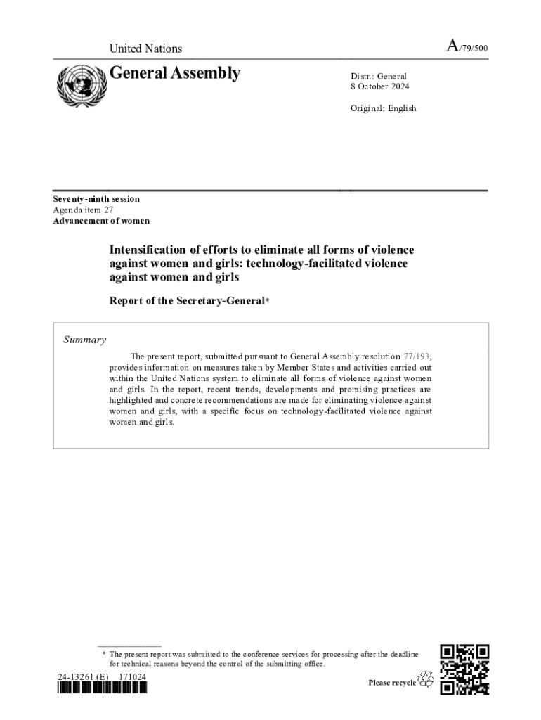 The report provides information on measures taken by Member States and activities carried out within the United Nations system to eliminate all forms of violence against women and girls, highlighting