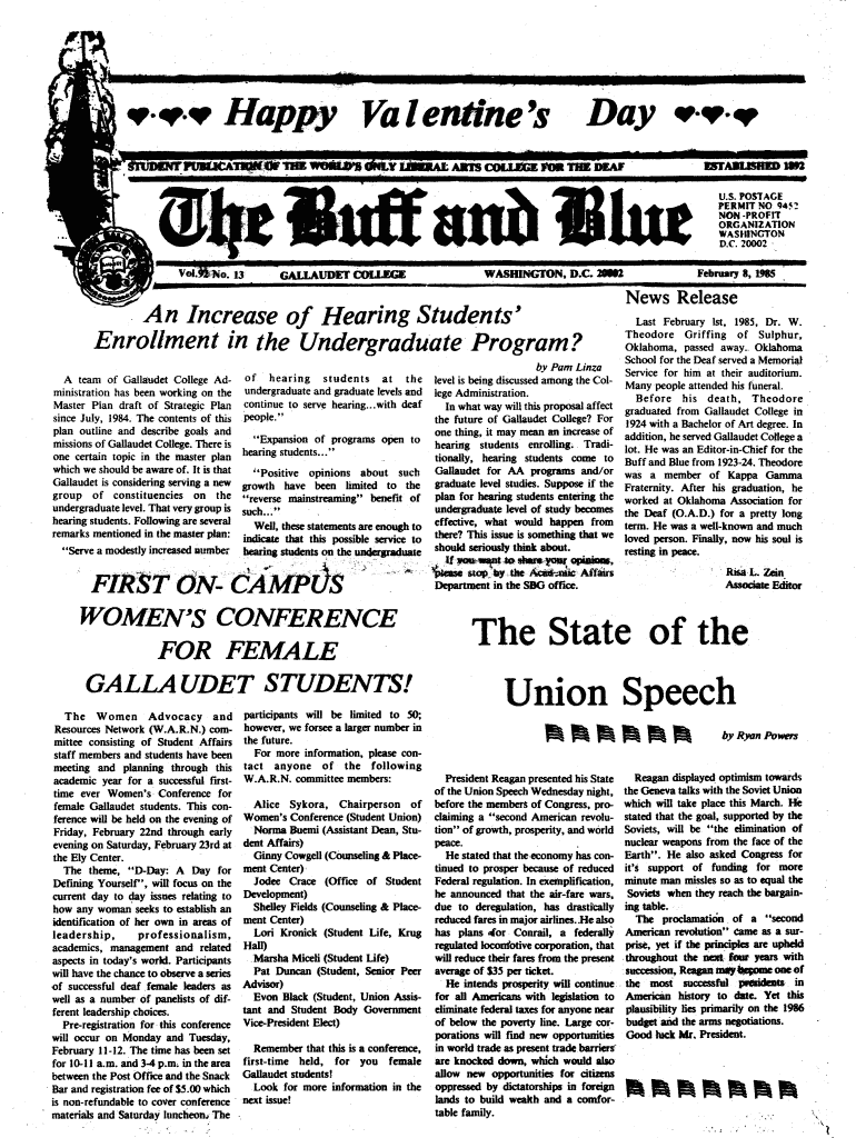 Ii Hap Valentine s Day — — m DT intimate for the won Le i m ESTAHJSIIED I t n U.S. POSTAGE PERMIT NO 9452 NON -PROFIT ORGANIZATION WASHINGTON D.C. 20002 Vol. o. 13 6ALLAUDET COLLEGE An Increase
