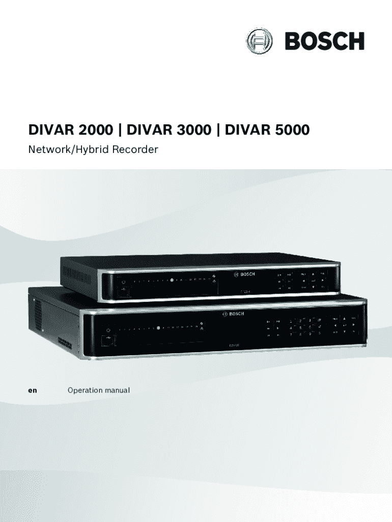 DIVAR 2000 | DIVAR 3000 | DIVAR 5000 Network/Hybrid RecorderenOperation manualDIVAR 2000 | DIVAR 3000 | DIVAR 5000Table of contents | en3Table of contents 1Safety71.1Important safety instructions71.2FCC