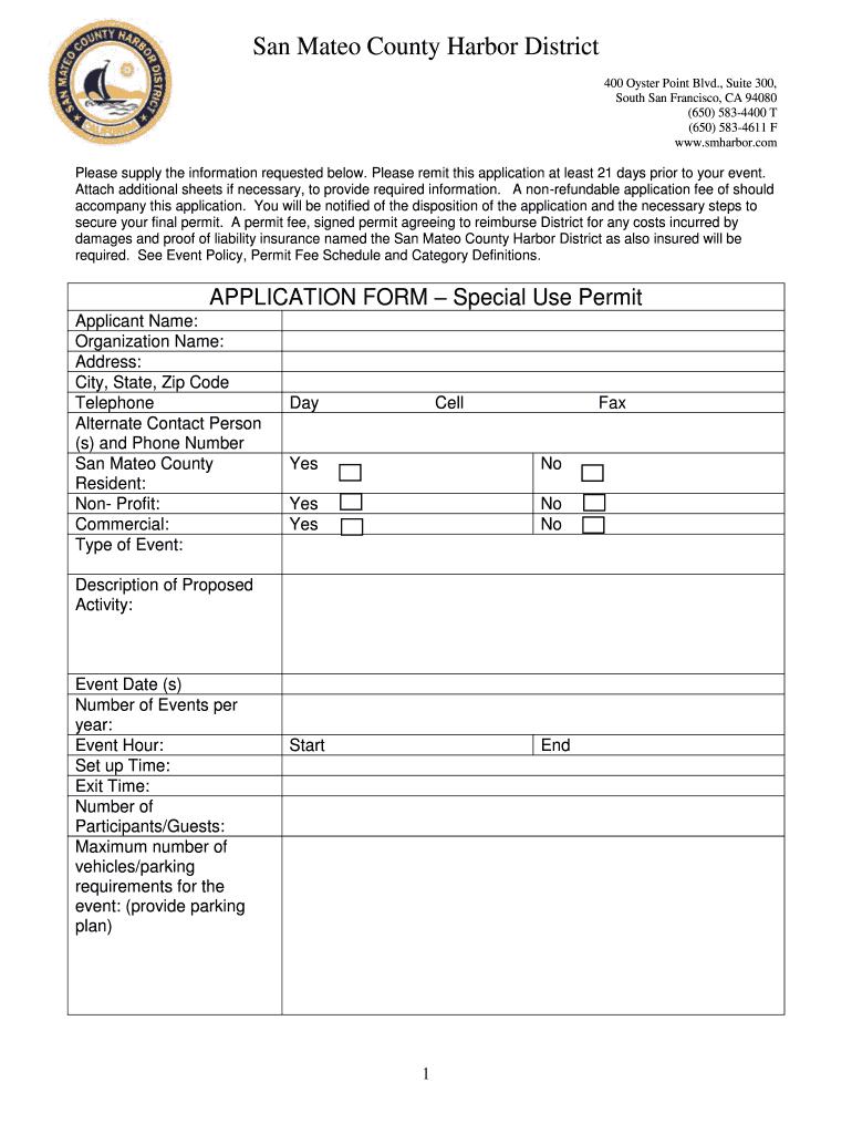 Get the free Application Form Special Use Permit - San Mateo County Harbor ...