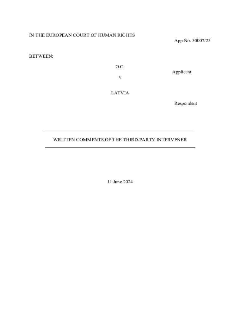 IN THE EUROPEAN COURT OF HUMAN RIGHTS App No. 30007/23 BETWEEN: O.C. Applicant v LATVIA Respondent___ WRITTEN COMMENTS OF THE THIRDPARTY INTERVENER ___11 June 2024Introduction 1. These written comments