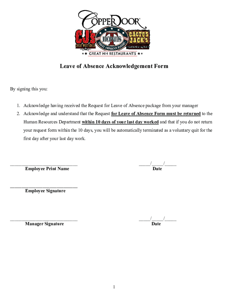 Get, Create, Make and Sign leave of absence acknowledgement
