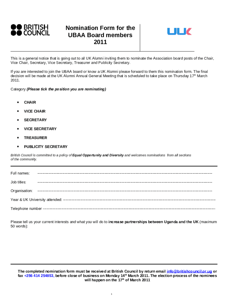 How to fill Nomination for the Ubaa Board Members word template