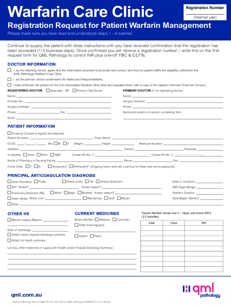 A guide for doctors to register patients with the Care Clinic for monitoring and management of therapy, including operating hours, contact details, and roles and responsibilities.