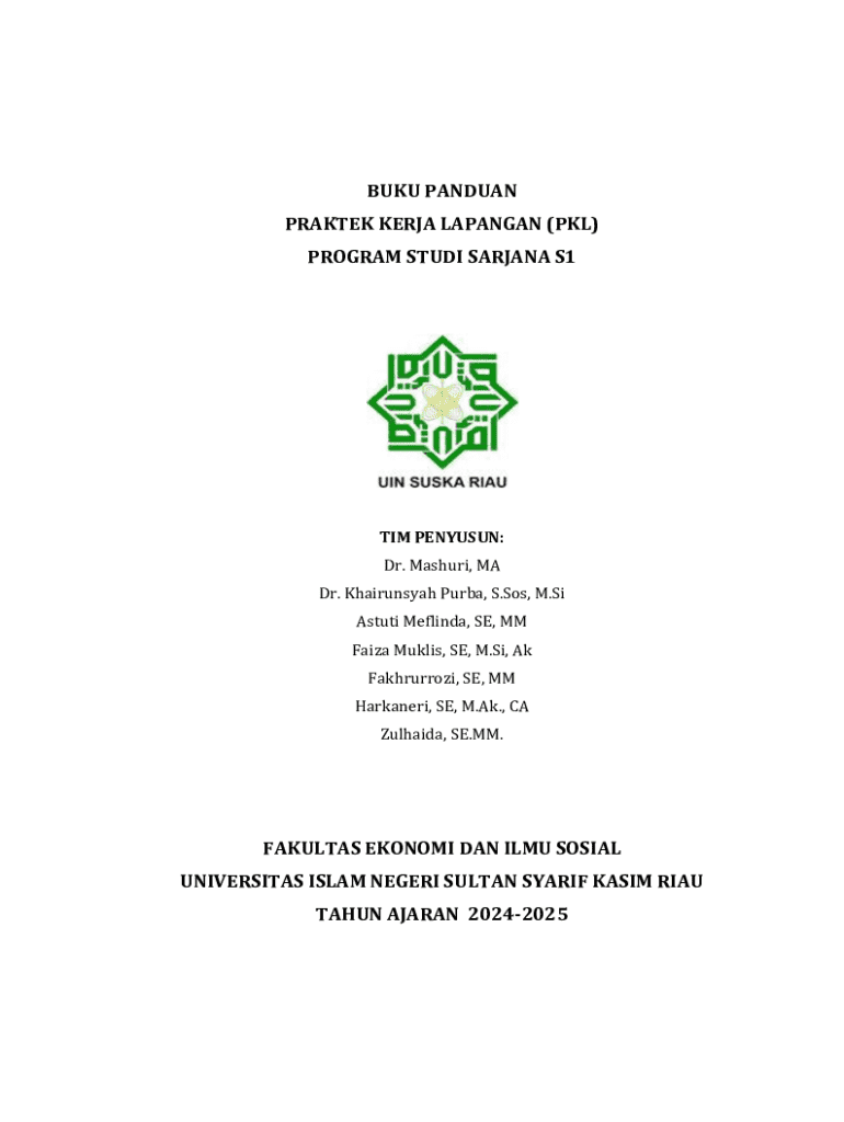 Buku ini merupakan panduan bagi mahasiswa Program Studi Sarjana S1 Fakultas Ekonomi dan Ilmu Sosial UIN Sultan Syarif Kasim Riau dalam menjalankan Praktek Kerja Lapangan (PKL) untuk tahun ajaran 2024-2025.
