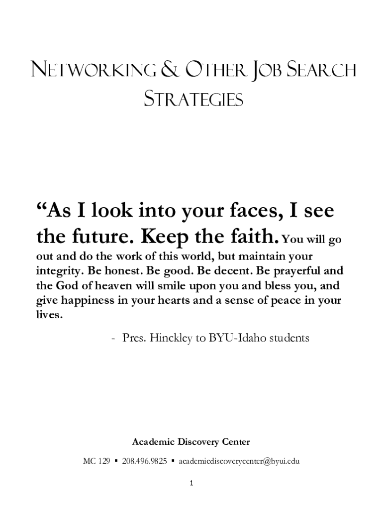 NETWORKING & OTHER JOB SEARCH STRATEGIESAs I look into your faces, I see the future. Keep the faith. You will go out and do the work of this world, but maintain your integrity. Be honest. Be good.